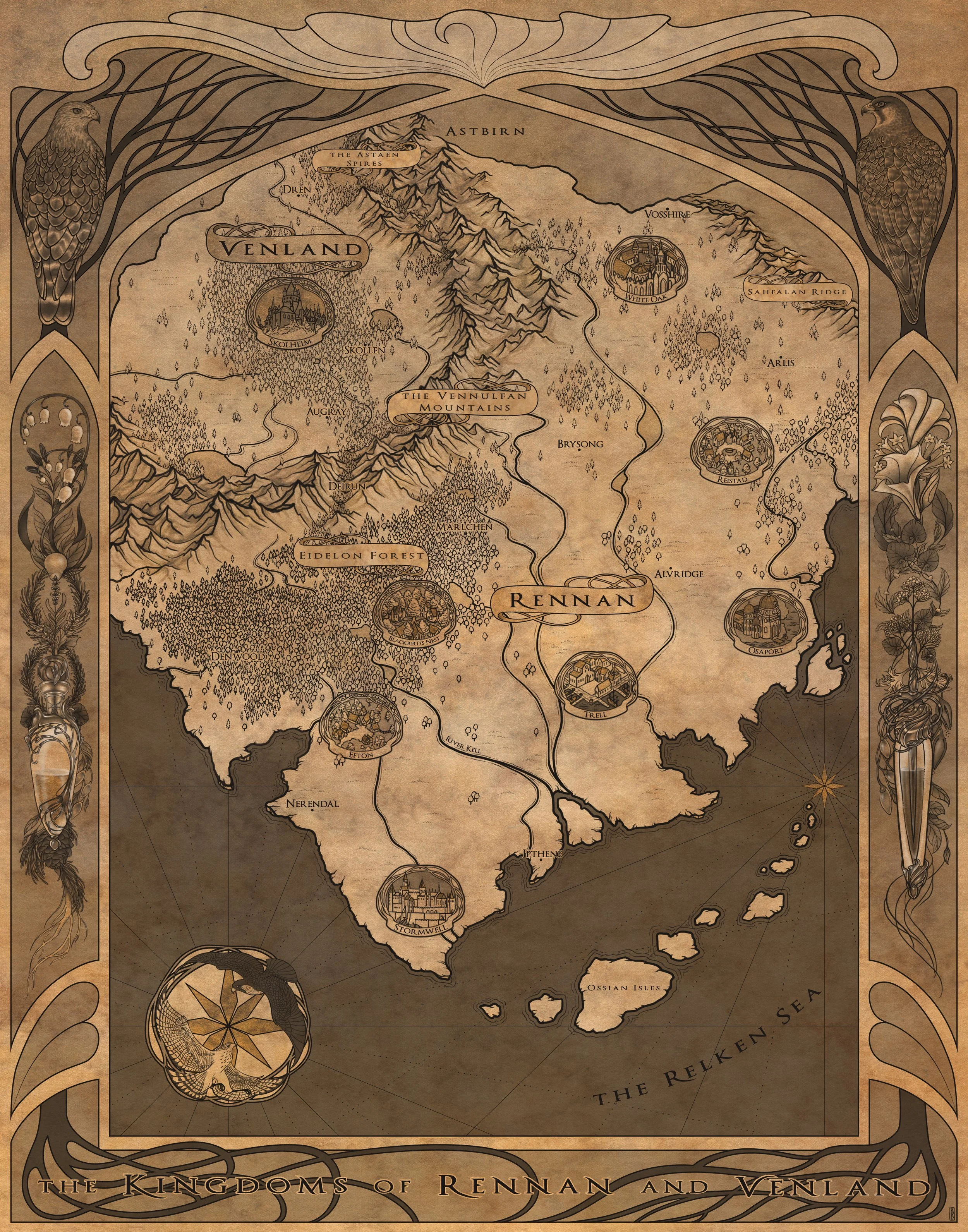 One of my favorite parts of a painting is rendering the final details and highlights (partly because this means I’m almost done). Kathy and I worked together to design the Hermits’ sigil on the mast of their ship (which you might find hidden on other parts of the book…). The sigil is a mix of a Celtic triskele and the dragon shape of the aurora: rounded, flowing, harmonious, and inclusive.